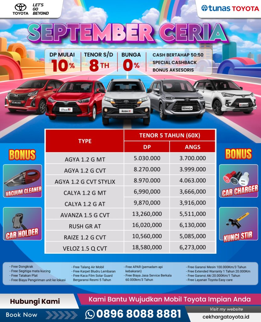 Cekhargatoyota.id - adalah Website Promosi dari Dealer Resmi Tunas Toyota Pecenongan, Jakarta Pusat, kami memberikan segala kemudahan dan kepuasan pelanggan untuk memilih mana varian mobil yang diinginkan. Menjadi prioritas utama kami untuk menciptakan kenyamanan pelanggan.